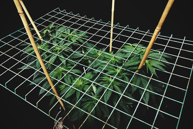 ScrOG: Budete potřebovat pletivo s dostatečně velkou clonou skrz které budete prostrkávat konopné listy a větve. Tuto clonu si můžete vyrobit z běžného pletiva na ploty nebo z plastové mříže či z drátu, který bude zafixován do rámu. Smysl pletiva tkví v tom, že skrz něj prostrkáte veškeré nové větve. Větve, ze kterých by byly nedorostlé postranní větve s prakticky žádnými palicemi, nyní budou zdravé, vrchní větve, které dostanou dostatek světla a vyroste na nich mnoho palic.